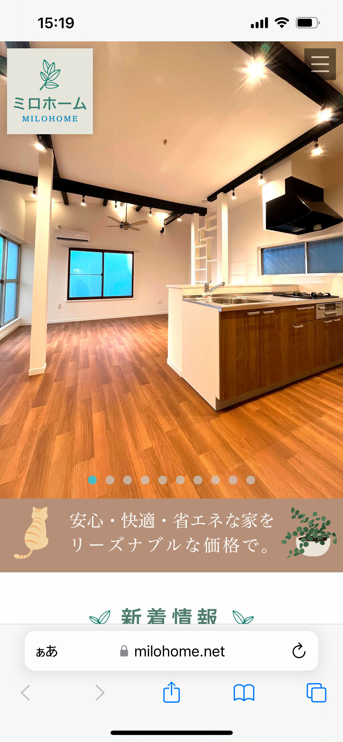 会社名の「ミロホーム」のミロは飼いネコの名前だと言うので、サイト全体にネコ愛が感じられるものにした。